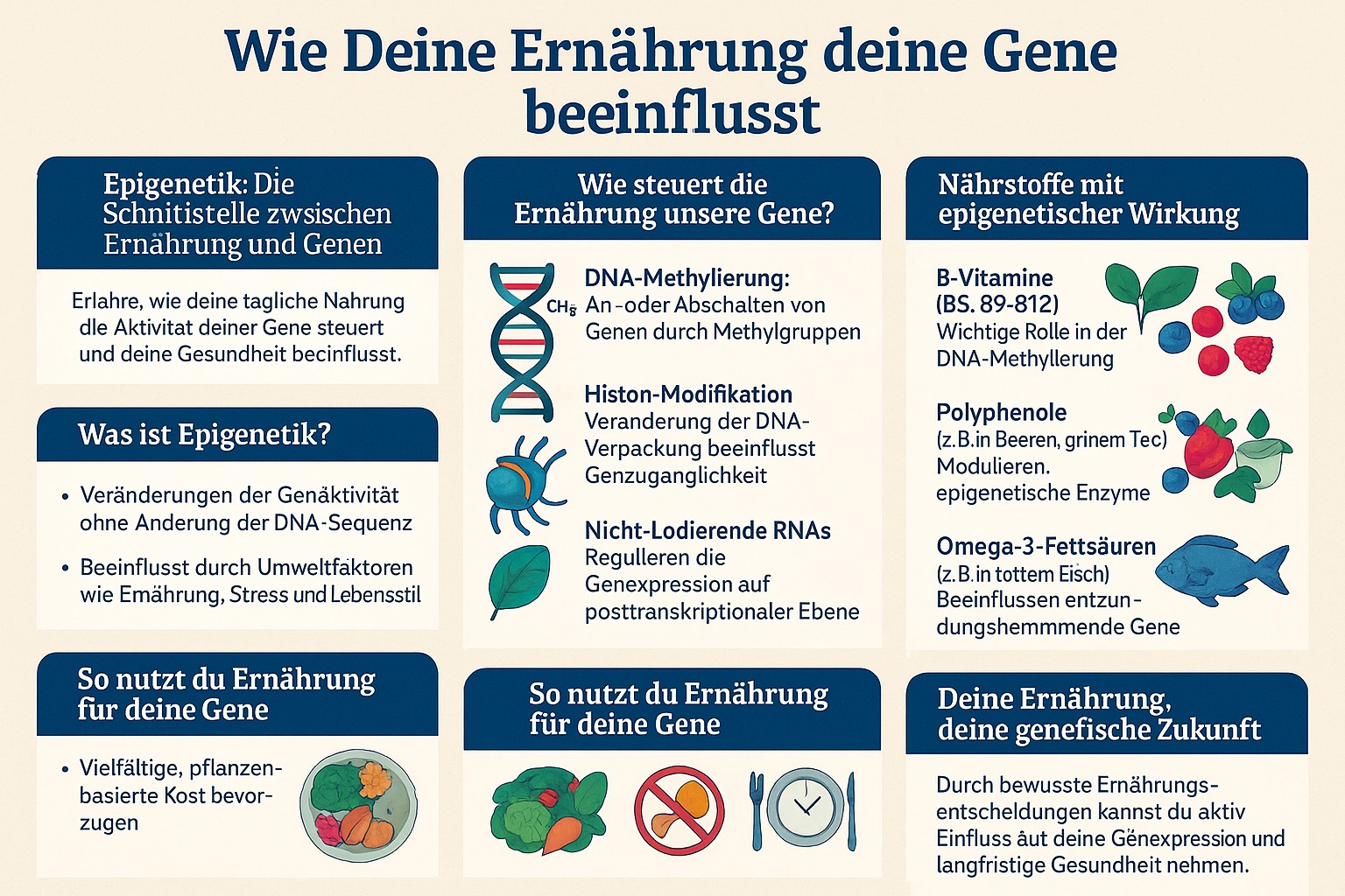 Der Einfluss der Ernährung auf die Genexpression ist mittlerweile wissenschaftlich gut belegt. Hier sind die wichtigsten Zusammenhänge: