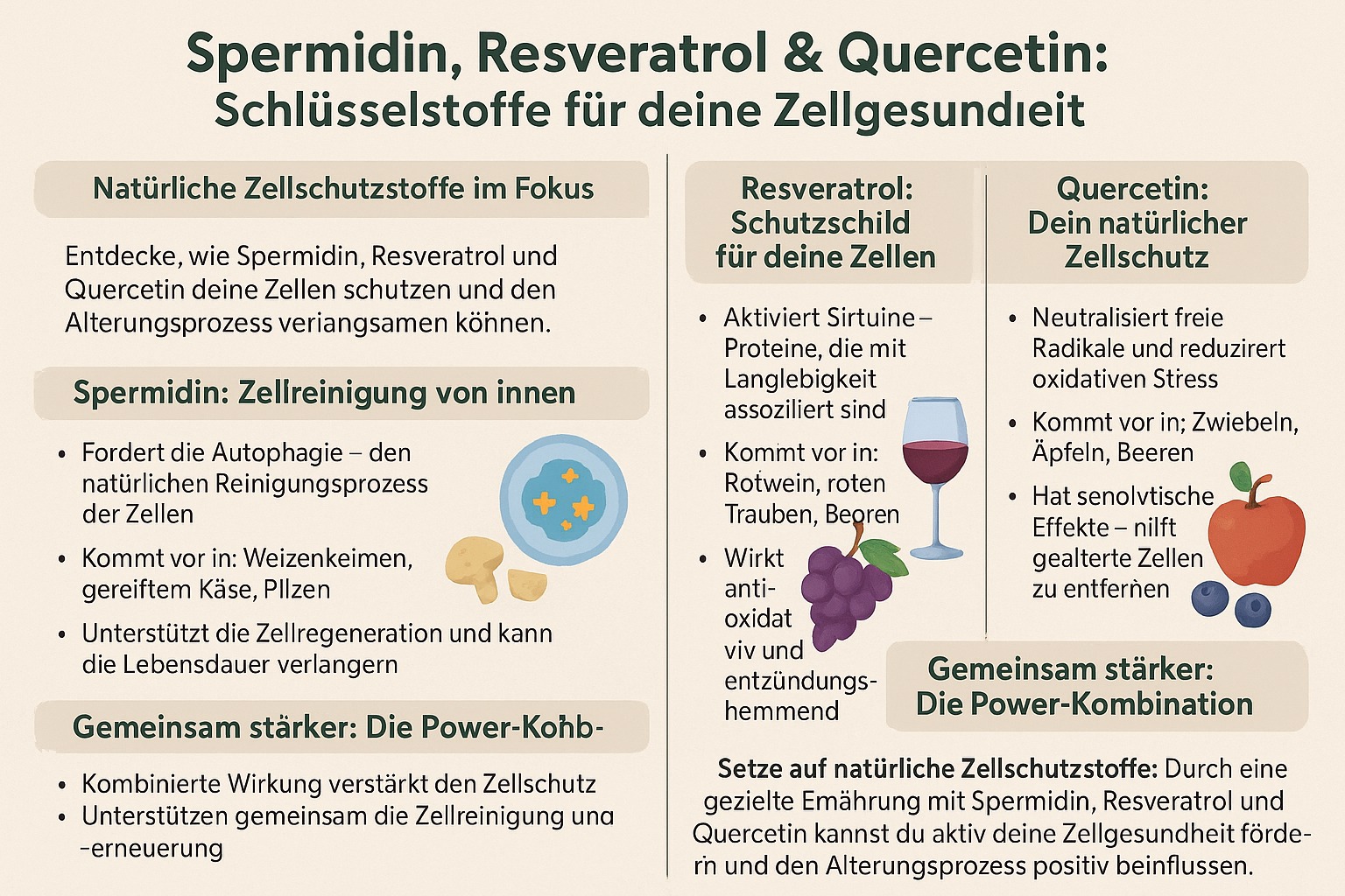 Spermidin, Resveratrol, Quercetin – was sie wirklich für Deine Zellen tun