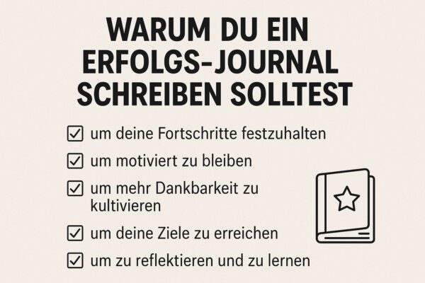 Erfolgs-Journal: Dein Schlüssel zu mehr Selbstbewusstsein und innerer Stärke Ein regelmäßiges Erfolgs-Journal kann Dir helfen, Deine Fortschritte zu erkennen und Dein Selbstbewusstsein nachhaltig zu stärken – auch wenn Du glaubst, dass Dir dafür die Zeit fehlt. Warum ein Erfolgs-Journal Dein Leben verändern kann Kennst Du das? Du stehst morgens auf, hetzt durch den Tag, erledigst…